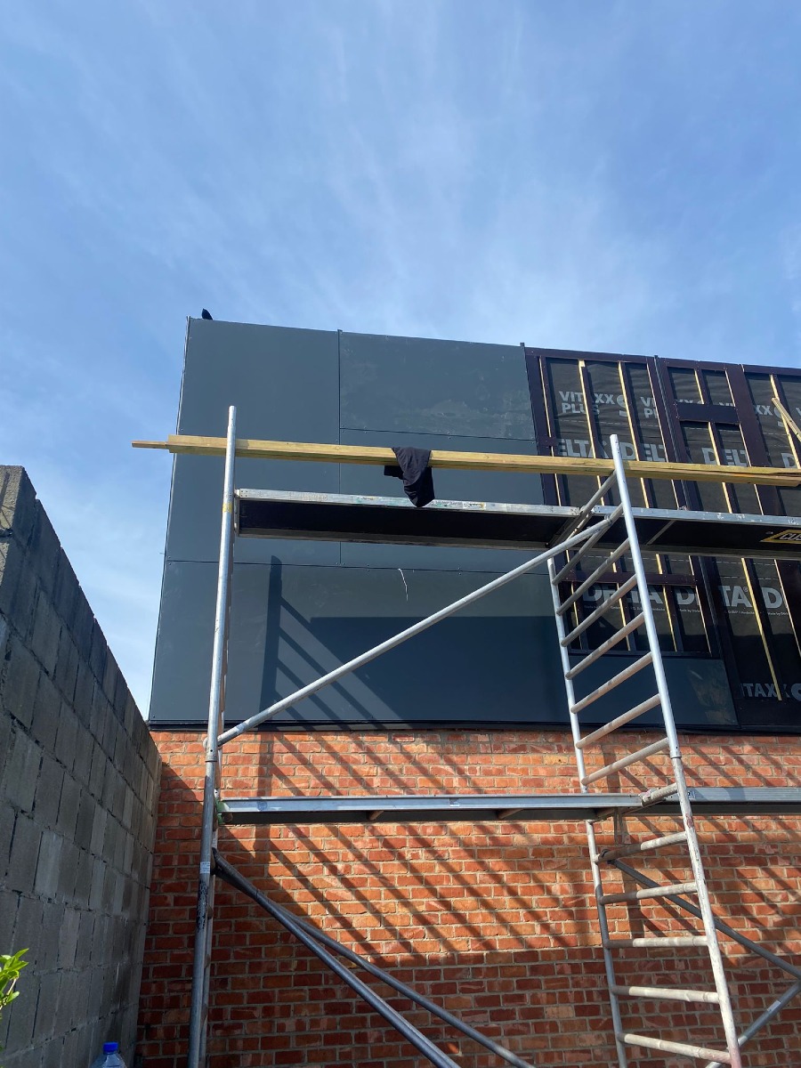 Bij dakwerken en dakrenovaties is een mooie en kwalitatieve afwerking van uiterst belang. Vaak dient er ook een vernieuwing van de dakoversteek en de gevelbekleding te gebeuren. Wij werken hiervoor met trespa, HPL en hout, zowel voor grote als kleine oppervlakten. Wens je je volledige oude gevel een nieuwe look te geven? Dat kan ook bij ons. We hebben – naast dakwerken en gevelbekleding – ook ruime ervaring met het vernieuwen van oude gevels aan de hand van nieuwe voegwerken: uithakken en uitslijpen van voegen, opnieuw invoegen, reinigen en het aanbrengen van nieuwe voegen. Contacteer ons gerust voor meer informatie.
